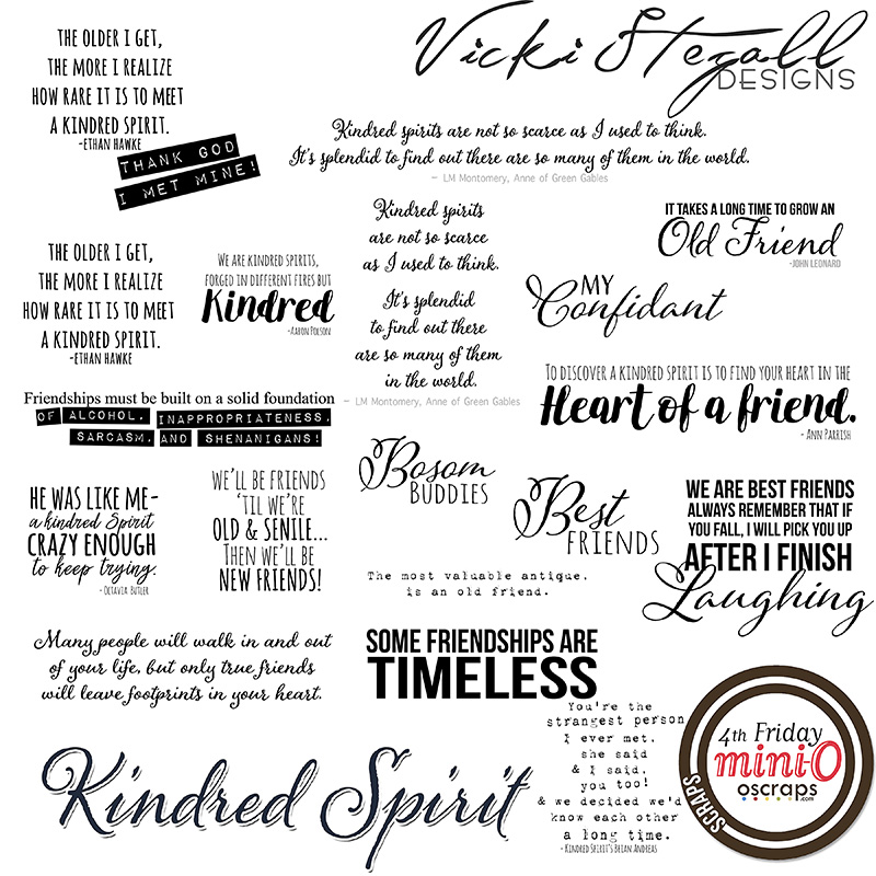 17 Friendship themed wordart ready for titles and journaling @ 300 dpi, .png format