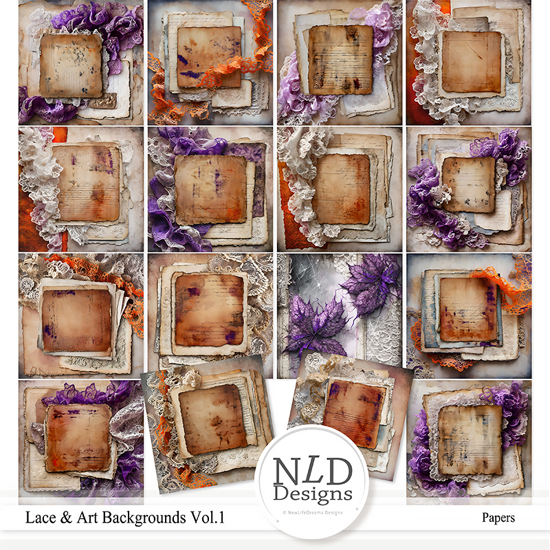 Lace & Art Vol.1 Backgrounds - Digital Scrapbooking Papers by NLD Designs