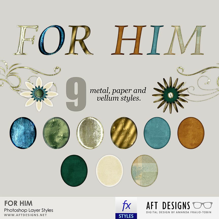 • (9) Various mettalic, paper and vellum styles. Photoshop ASL file included.