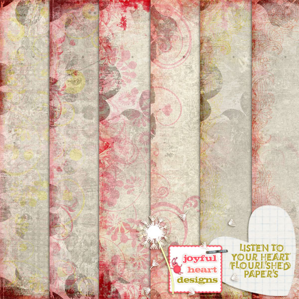 Listen to your Heart {flourished} includes six patterned papers, 300dpi, saved in digital .jpg format :) ✿