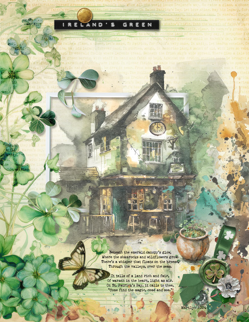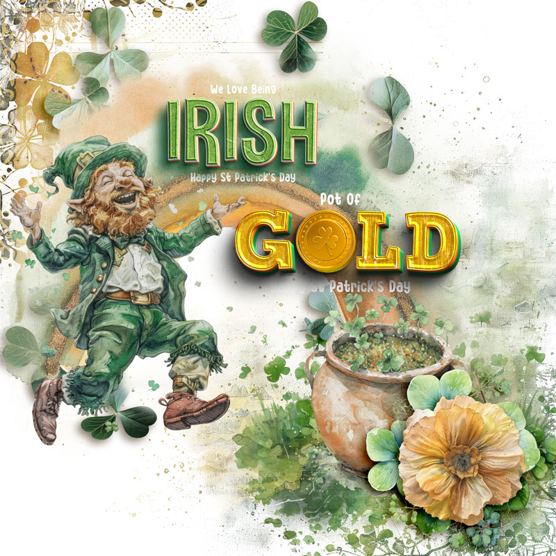 Discover the charm and traditions of the Emerald Isle with Lucky Charms & Clover. This collection is a tribute to Irish folklore, rolling hills, and timeless heritage, blending lush greens and shimmering golds. Inside, you'll find a variety of textures, patterns, and artistic pages, featuring delicate shamrocks, clover motifs, intricate florals, rustic papers, serene Irish scenery, and a mix of paint, pubs, overlays, flowers, buttons, charms, and Irish-themed elements. Ideal for heritage pages, springtime projects, outdoor adventures, St. Patrick’s Day layouts, and travel memories inspired by Celtic tradition.