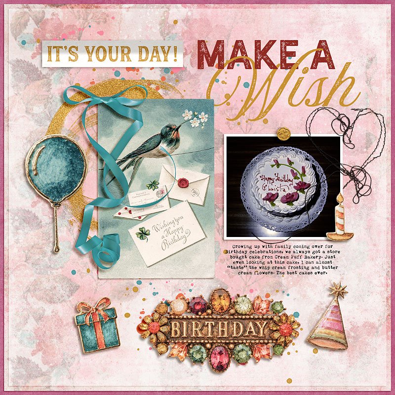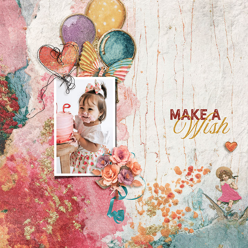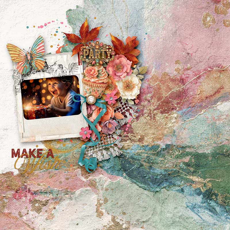 It’s time to celebrate — big or small, loud or quiet, this collection is all about joyful moments and simple happiness. Make A Wish brings together everything you need to capture that birthday sparkle: soft painterly papers, festive details, charming vintage bits, and a touch of magic. A collection that captures the feeling of celebration — not just for birthdays, but for every sweet, fleeting moment worth remembering.