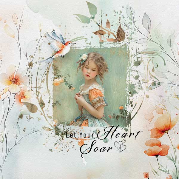 The Melodies in Flight digital scrapbook series is perfect for creating heartwarming scrapbook keepsakes, spring photo albums, or personalized cards, tags and bookmarks.