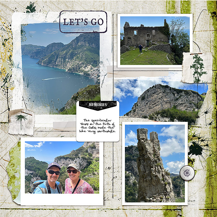 A set of digital scrapbooking page templates to mix and match and create a photobook of travel or event layouts. Fill all the spots with photos, or mix with journal cards or patterned paper to create a fun pocket scrapbooking layout.