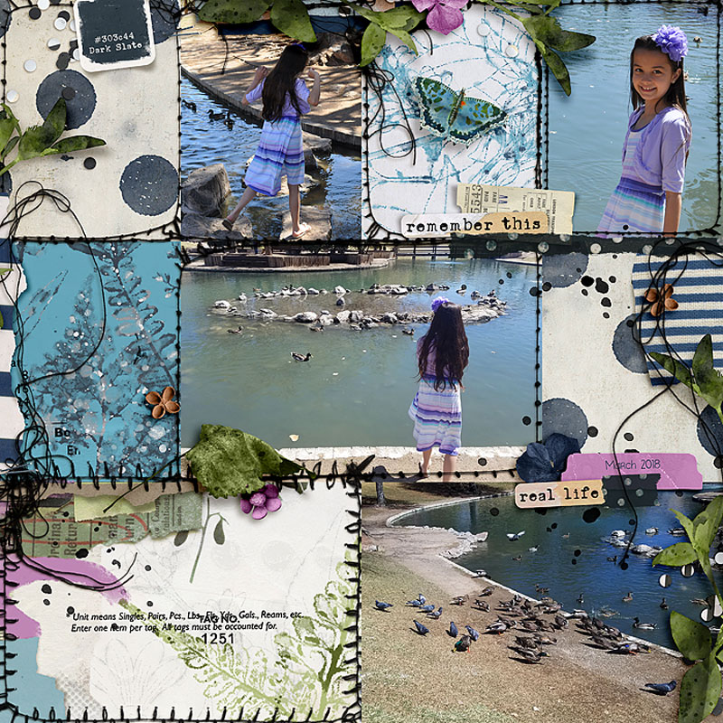 Simply add your photos to all or some of blank spots and/or your choice of pocket cards or papers and call it done or continue to embellish your page for extra dimension! T