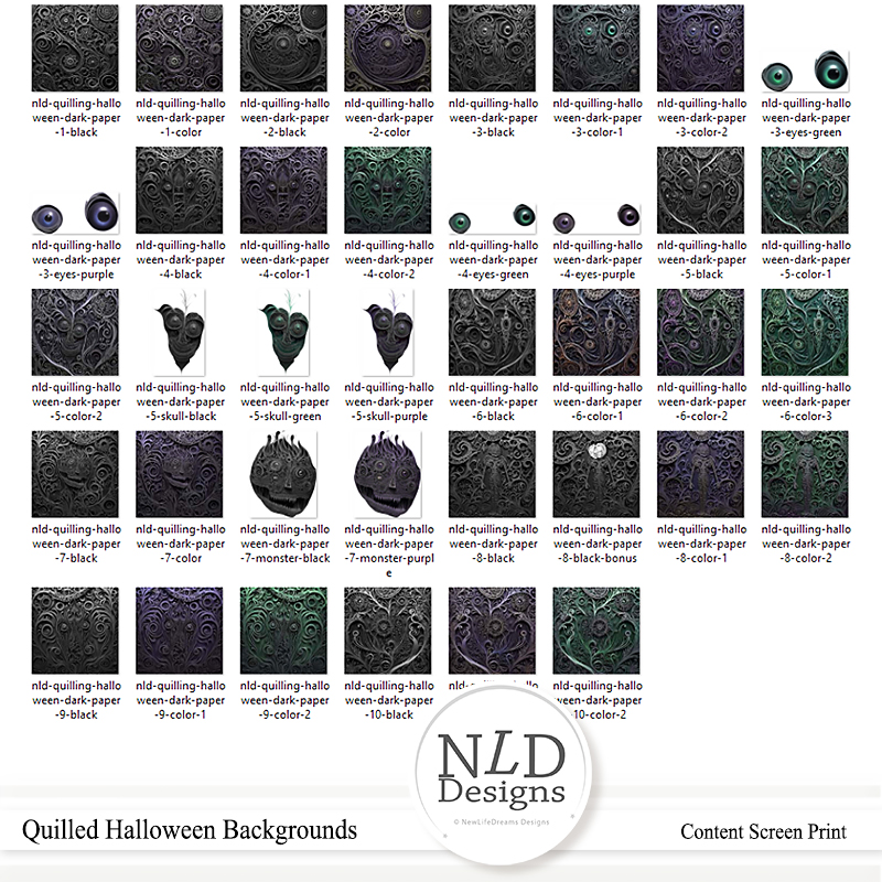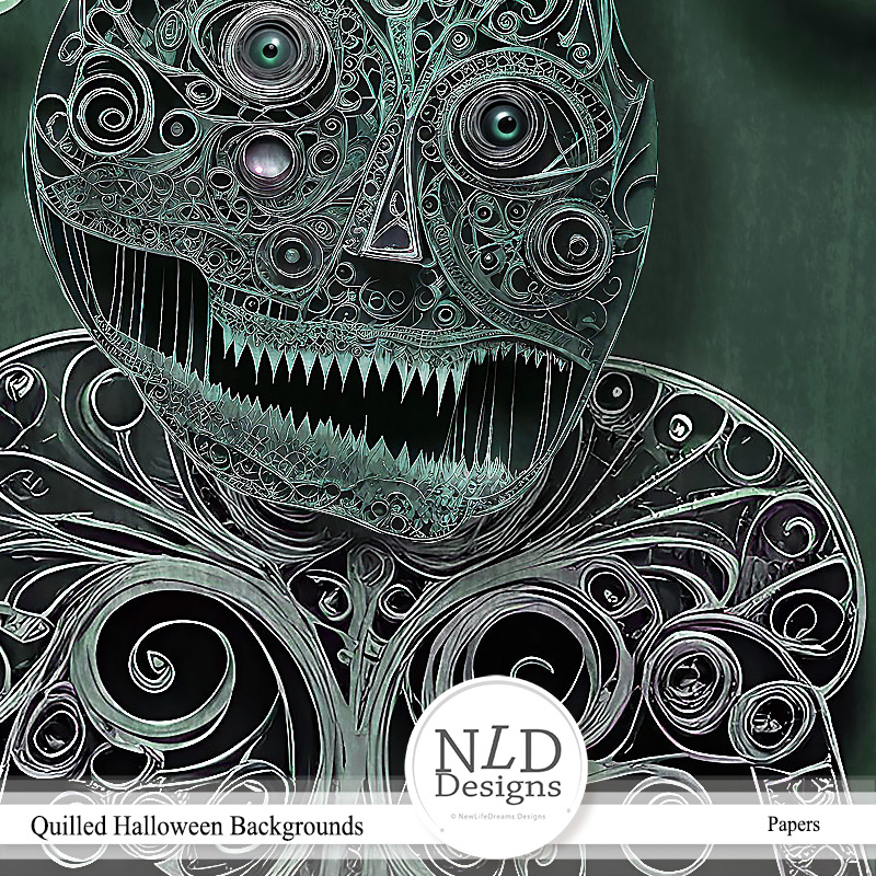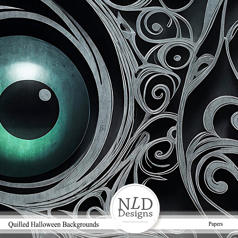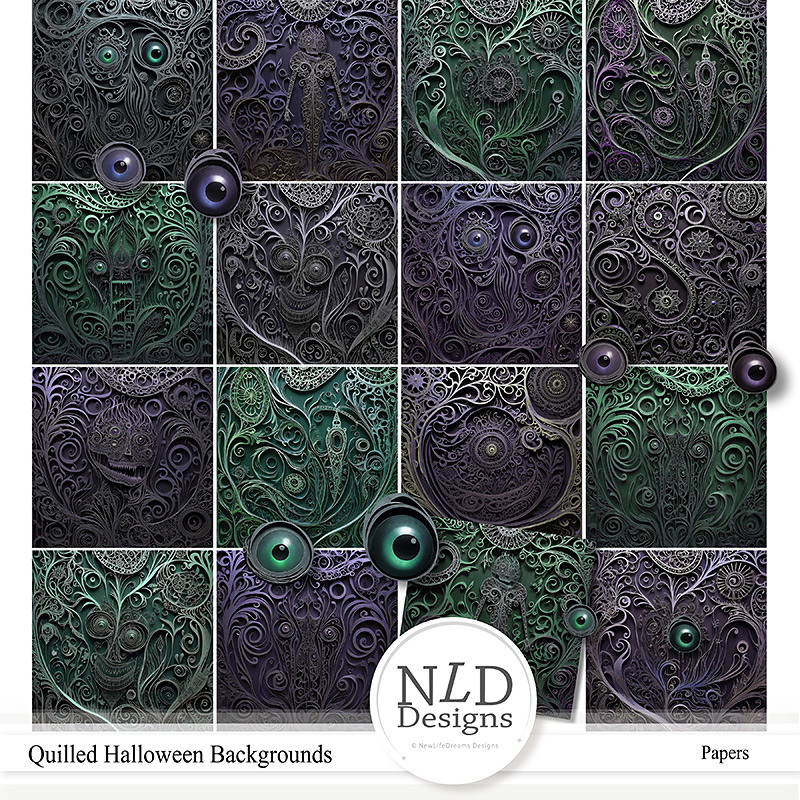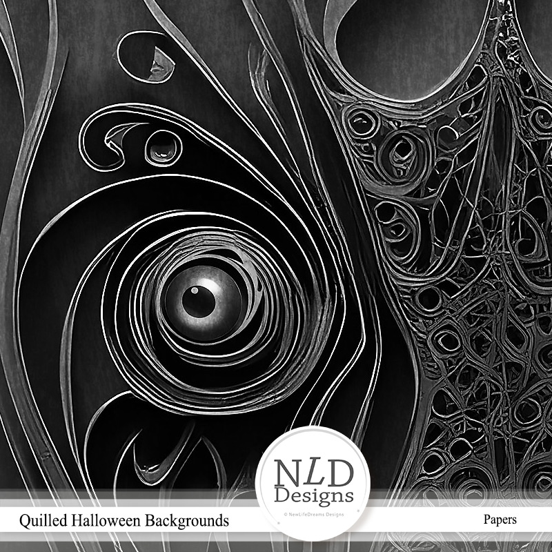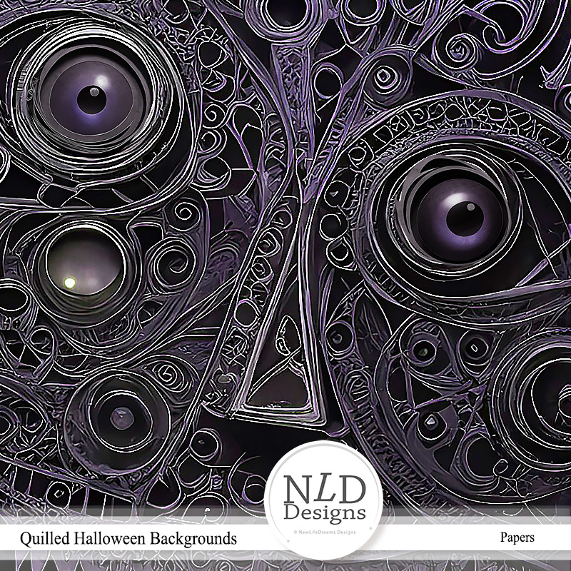 Quilled Halloween Dark Backgrounds - Digital Scrapbooking Backgrounds Papers by NLD Designs