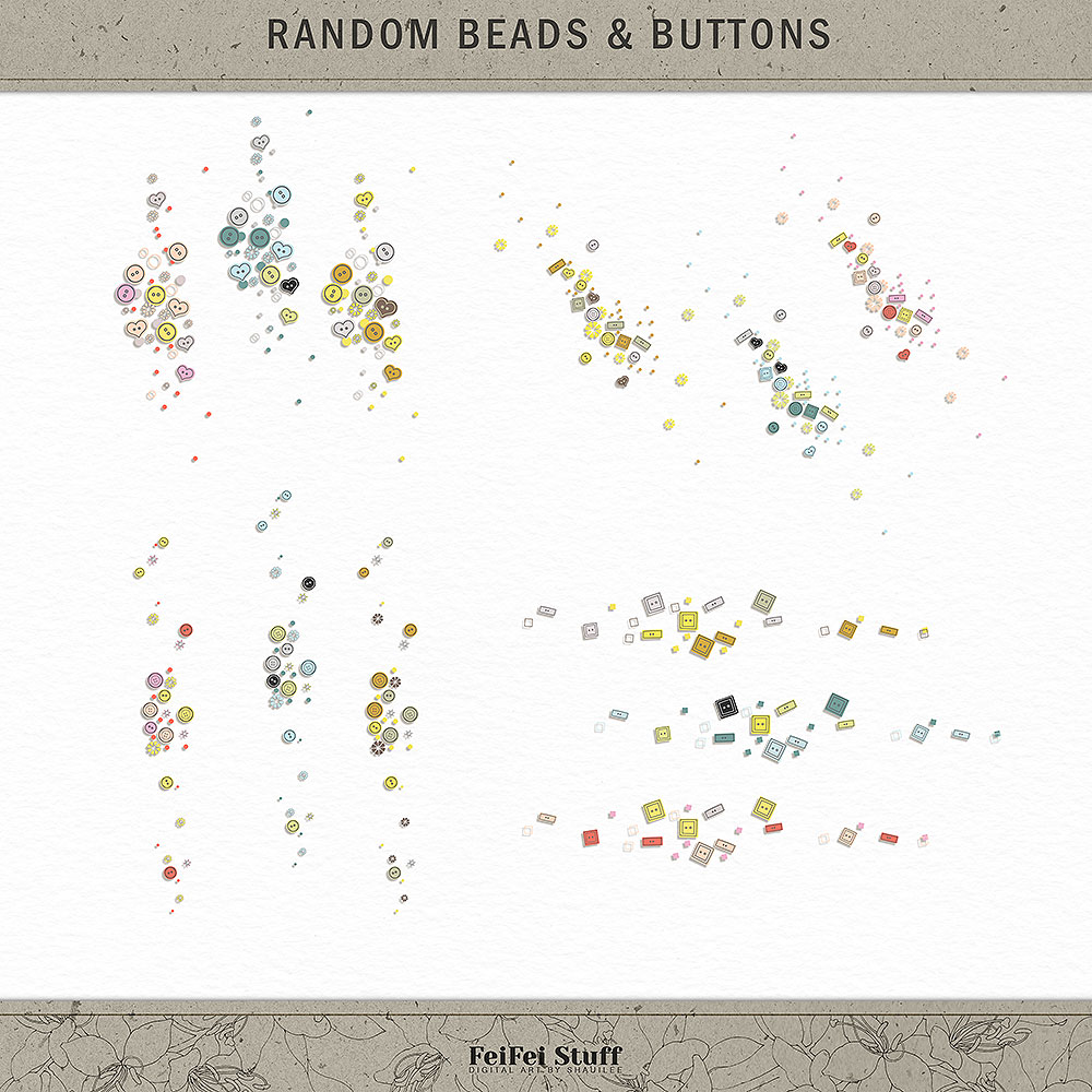 A delightful assortment of bead and button doodles to give some fun to your scrapbooking pages.