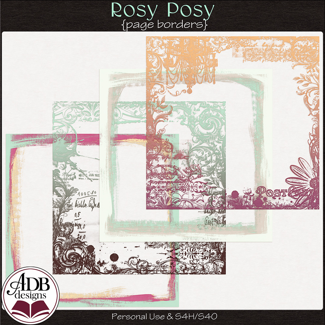 Bright and beautiful flowers, ribbons, frames and foliage with a touch of vintage to scrap the ladies in your family. Use the Rosy Posy Digital Scrapbook Collection by ADB for vintage or modern day photos to create some beautiful memory pages and books.