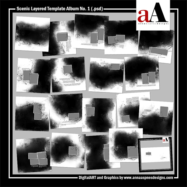A collection of 20 - 12 X 12 artsy and blended layered templates delivered in .psd format for Photoshop and Elements. These templates are delivered in single-page format but are designed to work together as double-page spreads. You also get a wrap-around BONUS cover set for photo book printing. Use the templates to showcase your favorite scenic, landscape and panoramic photos. Fonts are in the template layer labels. The templates are intended for use with the clipping mask function or for recoloring in Photoshop, Elements and Paint Shop Pro. All layer styles, masks, frames, brushwork, elements, stitching, tiles and text boxes shown are included. Simply clip your images to the FotoBlendz masks and add your own personalization through DigitalART supplies and words. Further information on using template collections in Photoshop and Elements can be found at Anna Aspnes Designs and a free video tutorial can be found here.