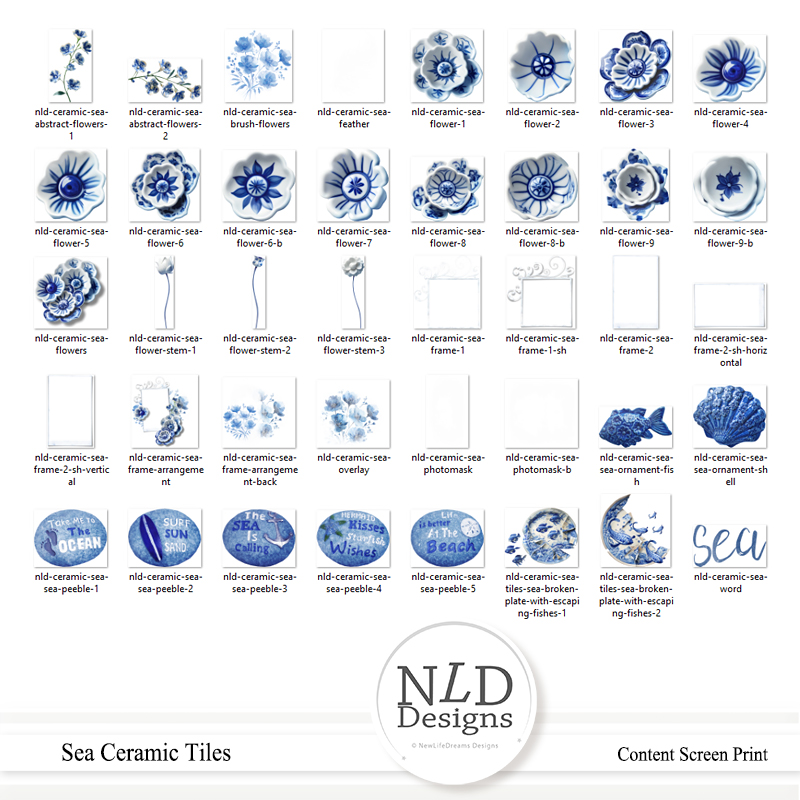 Sea Ceramic Tiles Elements By NLD Designs - Digital Scrapbooking Elements by NLD Designs