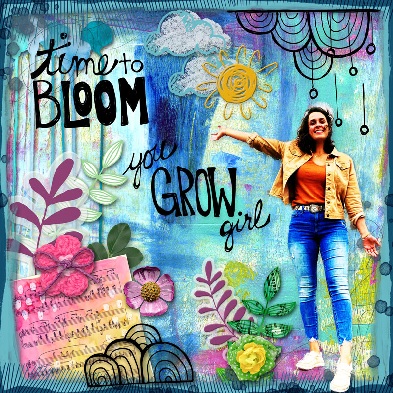 Showers and Flowers: Art Journal Kit by Mixed Media by Erin is a personal use Digital Art and Scrapbooking Kit that features 100 unique arty elements and 20 12x12 art papers, many of which are hand painted or gelli printed in my studio;