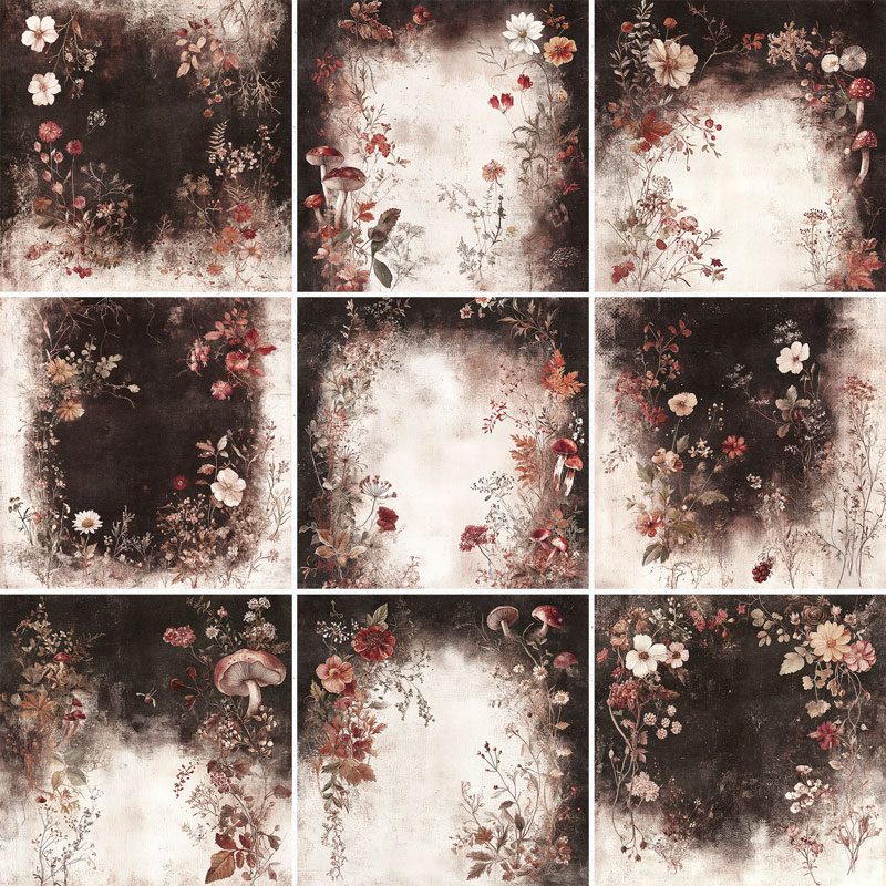 The collection includes dark canopy papers, foraged-style backgrounds, earthy solids, mixed media textures, woodland fragments, stitched details, mushrooms, branches and journal cards. Everything is designed with a grounded, natural atmosphere in mind — rich enough for dramatic pages, soft enough for everyday moments, and flexible across a wide range of autumn and woodland themes. Skogstid works especially well for documenting forest walks and colder days, seasonal journals, moody autumn pages or any project that calls for depth, texture and that quiet, slightly mysterious woodland character.