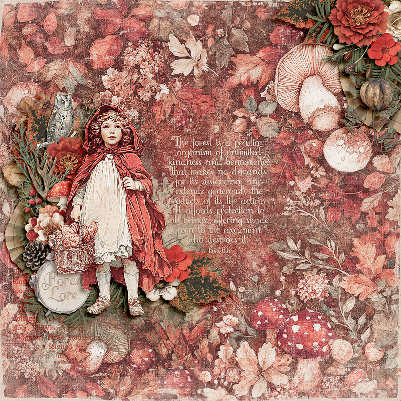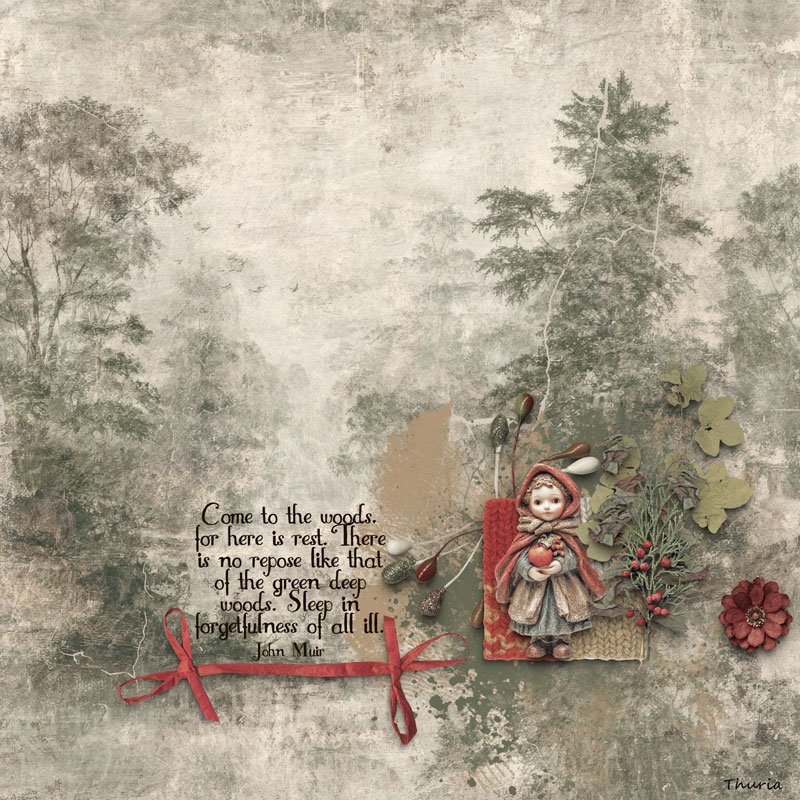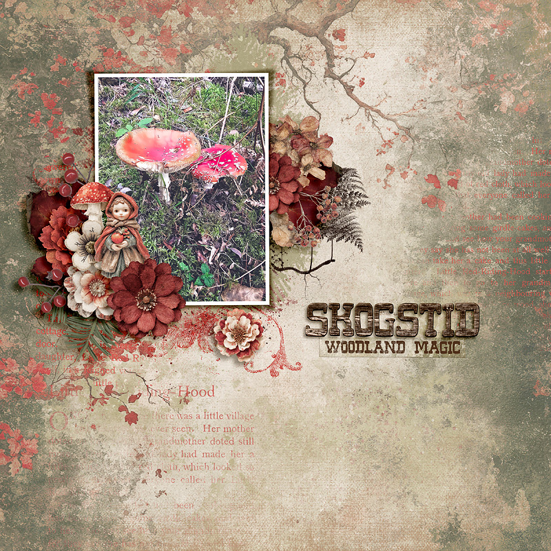 Skogstid is a collection built around the deeper tones and textures of late autumn forests. It mixes muted greens, warm browns and soft reds with worn bark, scattered leaves, earthier surfaces and the quiet tension that settles in the woods as the season turns colder. The mood leans into folklore elements without becoming literal — small hints, subdued colours and subtle shapes that echo the old stories rather than retelling them. You’ll find gentle nods to Little Red Riding Hood, kept understated so the woodland feel stays intact.