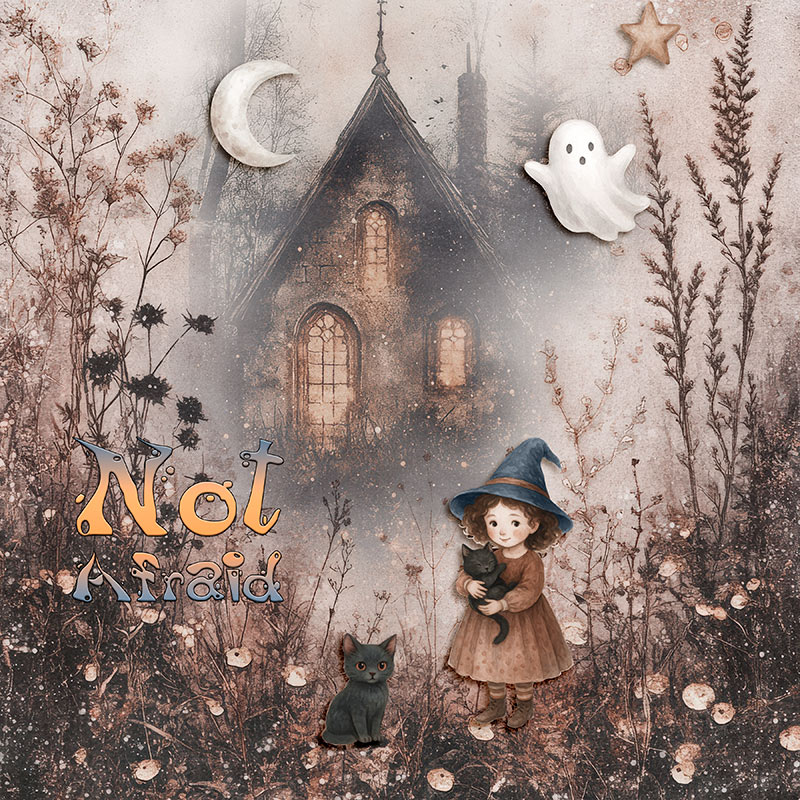This collection gathers six coordinated packs that live in that twilight mood: enchanted cottages, atmospheric nightscapes, softly faded dusk papers, moody storybook scenes, woodland portraits of witches performing their rituals, and a set of sweet storybook elements to bring whimsy into the mix. Everything shares a palette of coppery brown, dusky rose, sepia, and muted blue-grey — tones that echo the fading light and gentle warmth of dusk.