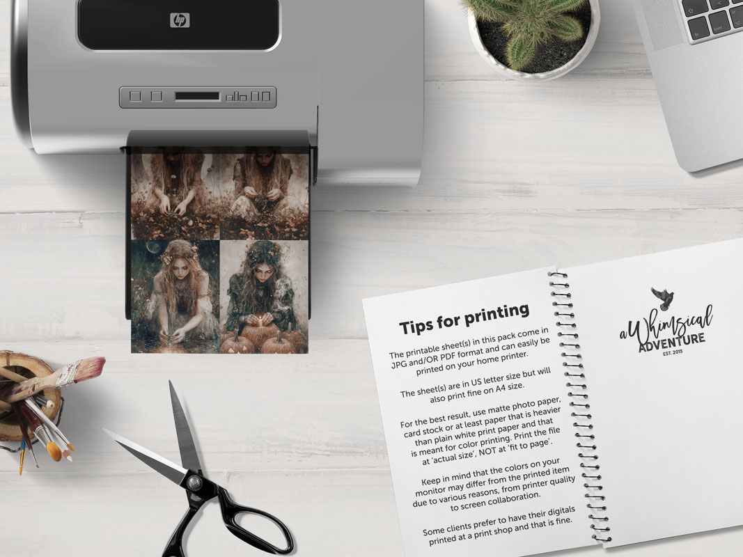 • 4.25 x 5.5 in: delivered as 9 printable sheets in JPG and PDF
