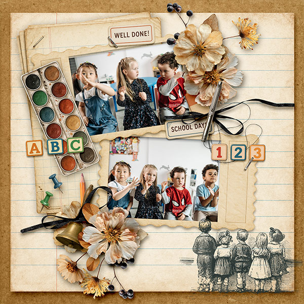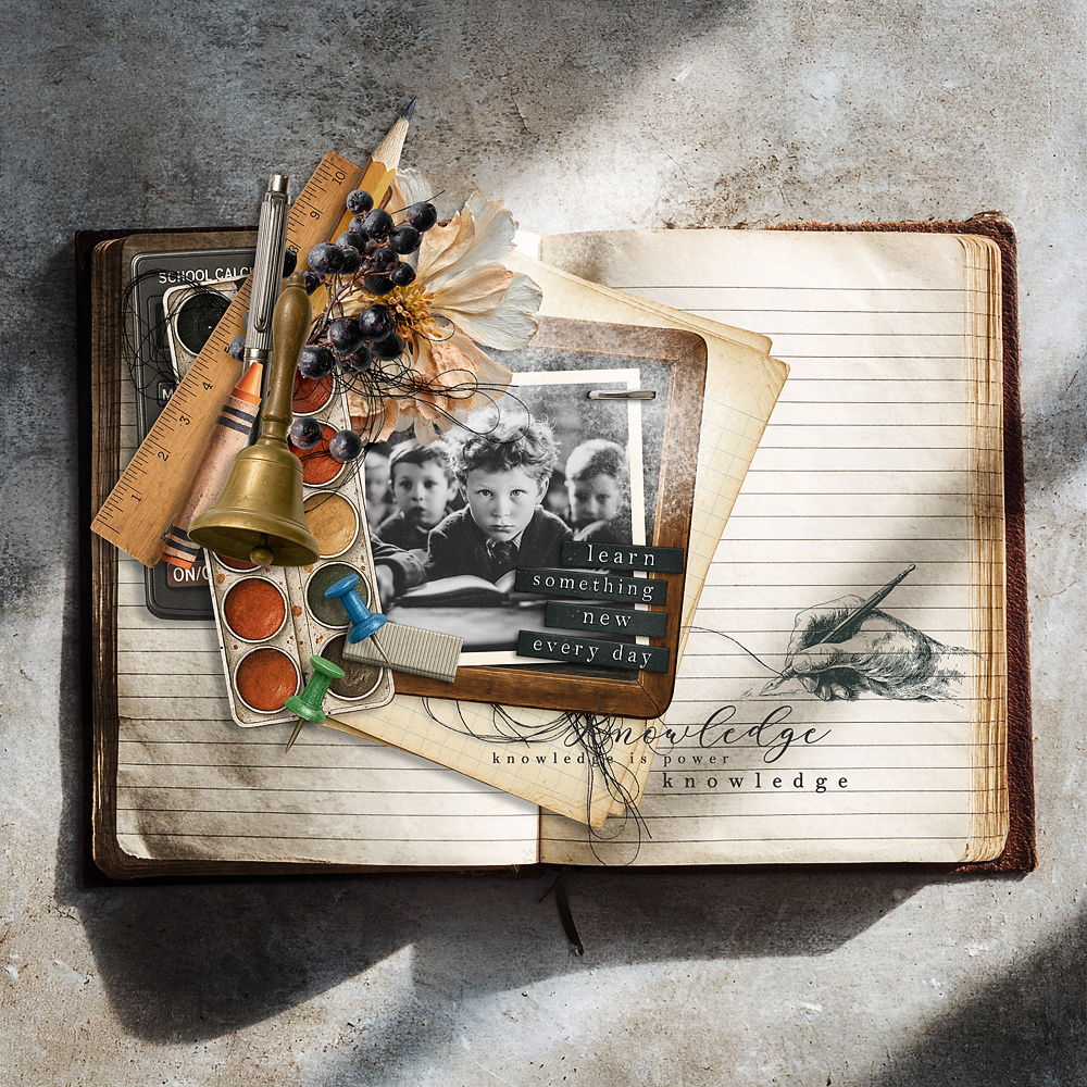 Start your school memories in style. This complete bundle has everything you need – artistic papers, unique elements, brushes, labels, and a FREE Alpha Pack for endless creativity.