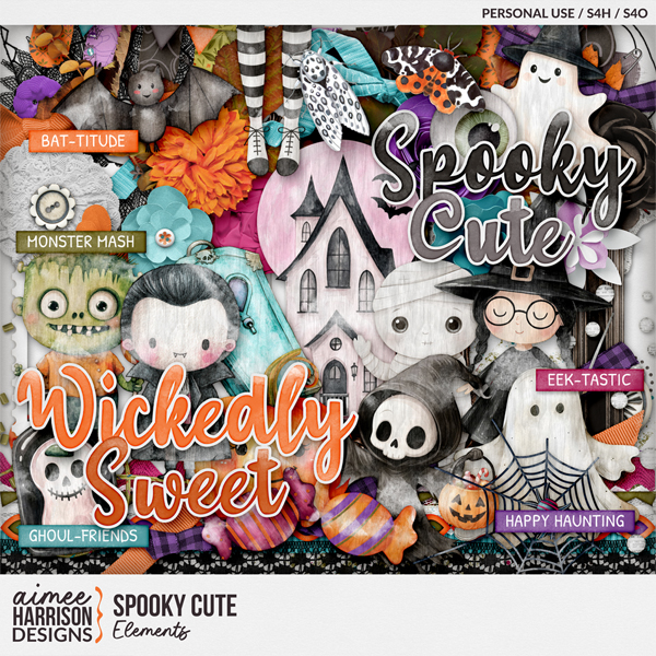 Bring a playful twist to Halloween with Spooky Cute, a digital scrapbooking collection filled with adorably eerie charm!