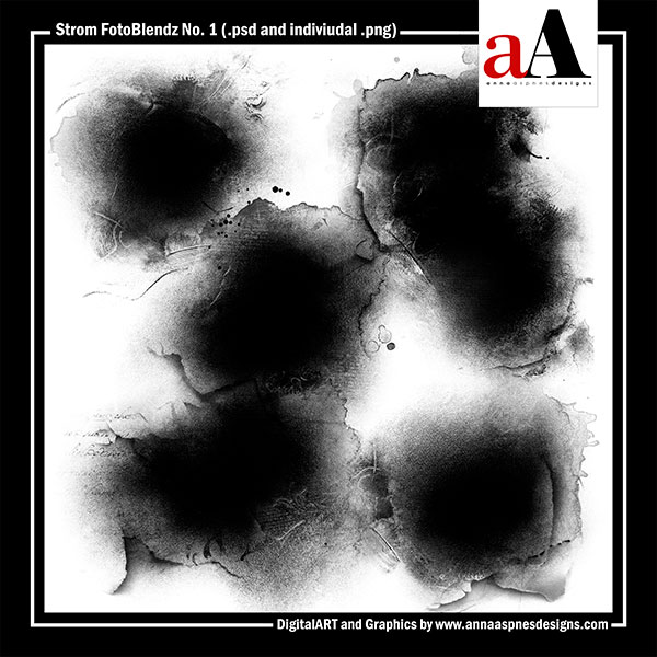 A collection of 5 FotoBlendz clipping masks delivered in multi-layer .psd and individual .png format format for easy blending in Adobe Photoshop and Elements. This product is designed to coordinate with Artplay Palette Strom but may also be used with your other digital supplies and assets. It includes: