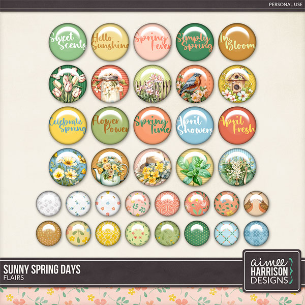 Sunny Spring Days Digital Scrapbook Collection by Aimee Harrison Sunny Spring Days Digital Scrapbook Flairs by Aimee Harrison