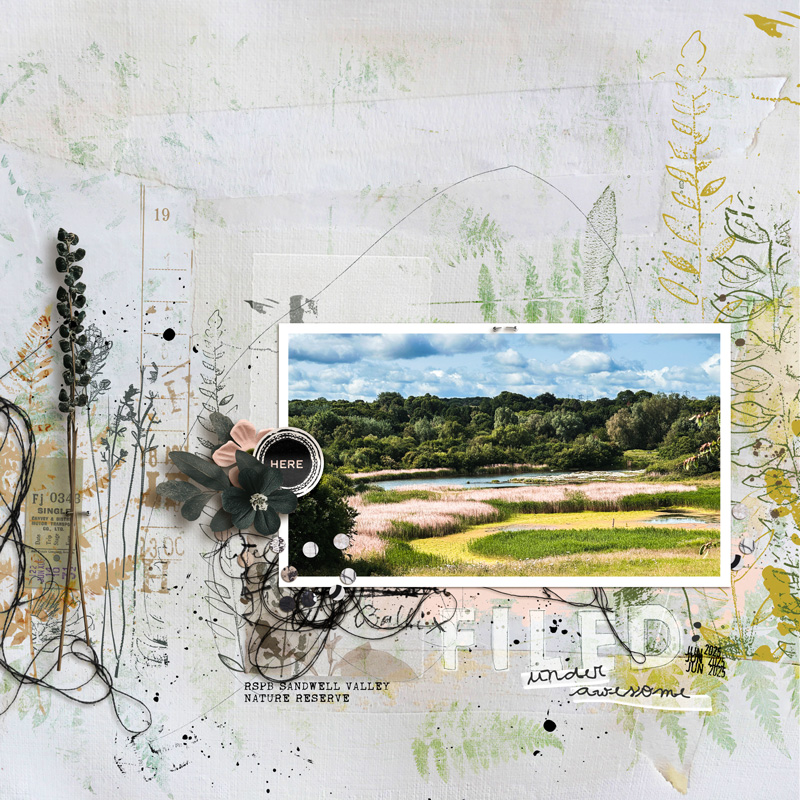 Designed for hybrid and digital scrapbooking, digital art projects, creative journaling and other paper crafts.Colours: Greens, yellows and neutrals