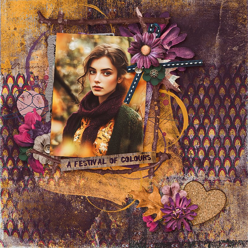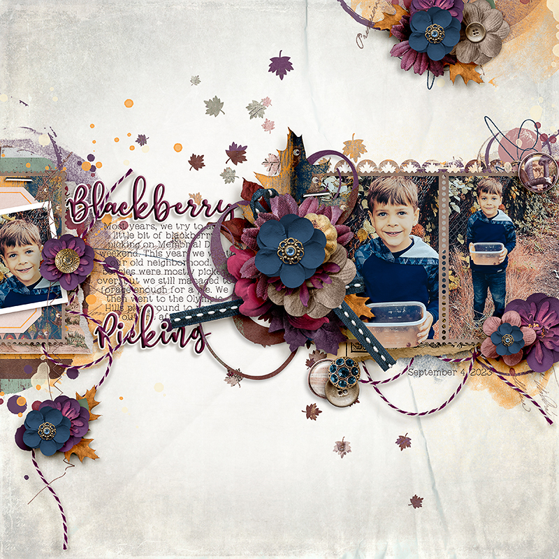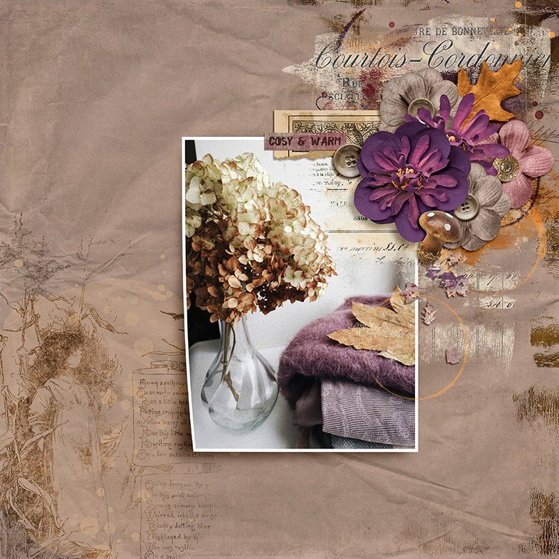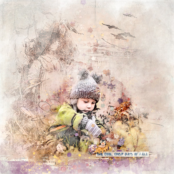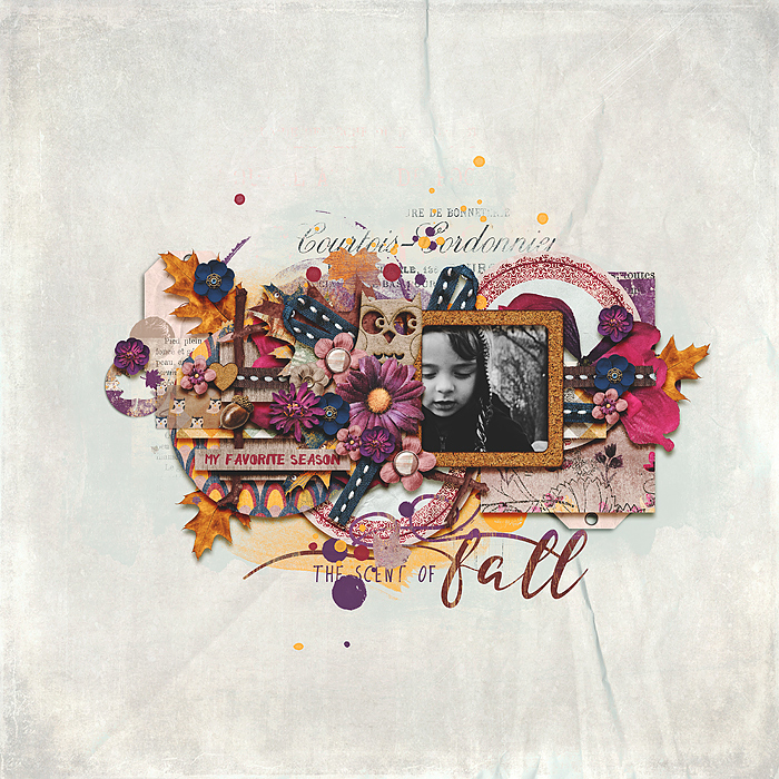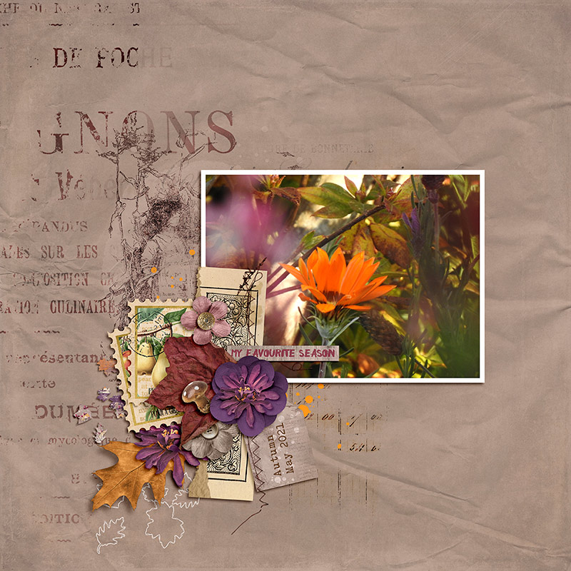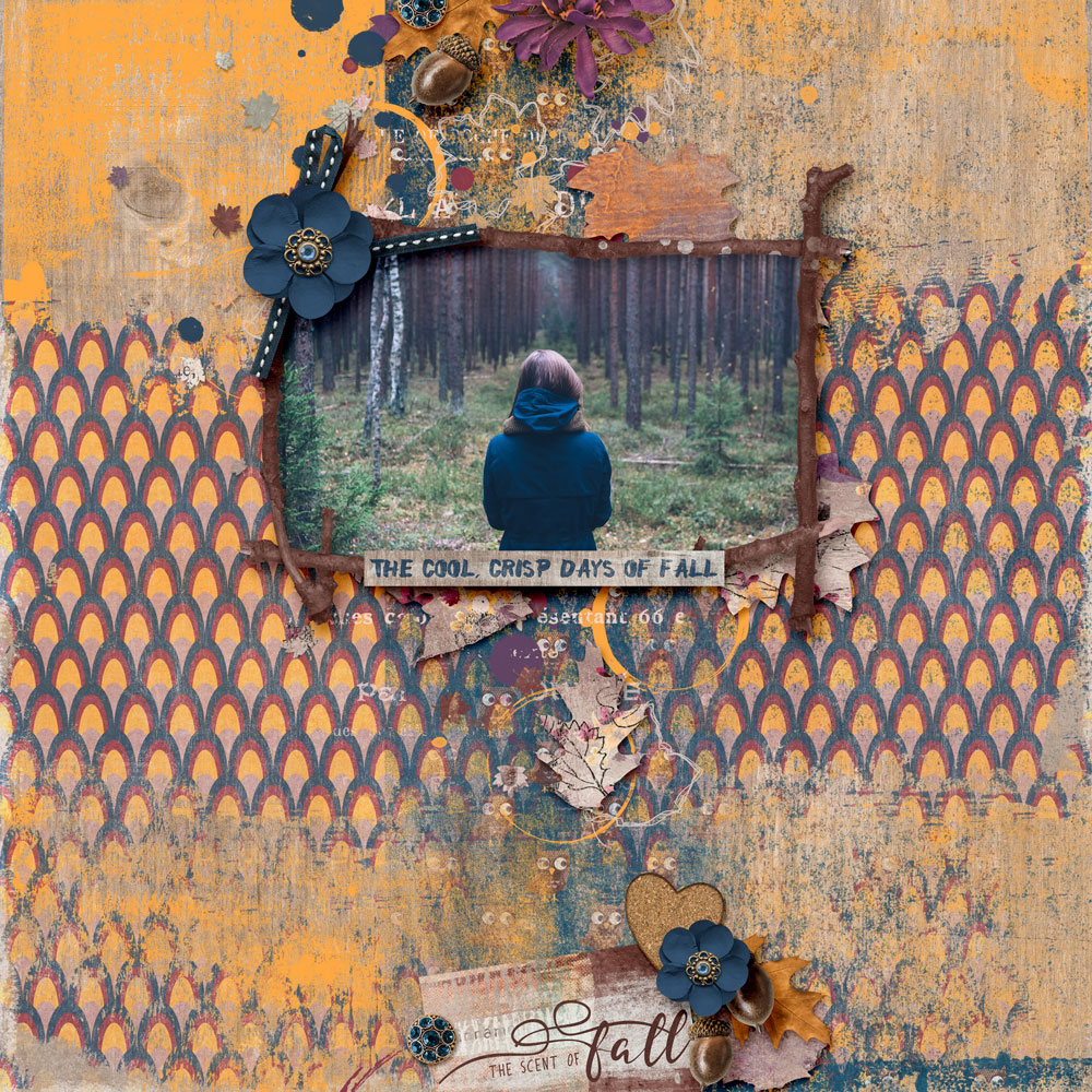 Mixed Media Elements: 90 individual PNG files, including 1 acorn, 1 circles border with cut out leaves, 3 brads, 3 buttons, 1 leaf confetti (in a shadowed and a shadowless version), 1 cork circle with a leaf cutout, 7 flowers, 1 branch frame + mask, 1 cork frame, 3 ornamental paper frames + mask, 1 cork heart, 1 torn piece of vintage ephemera, 2 real leaves, 1 fabric leaf, 4 paper leaves, 2 leaf scatters, 1 leaf scatter doodle, 4 painted masks, 1 wooden mini pumpkin, 1 mushroom, 3 owls, 1 painted overlay, 5 paint splats, 2 painted circles, 1 stamped circles cluster, 2 splatters, 1 torn vintage postcard, 3 ribbons, 2 stamps, 1 stitching, 2 round tags, 5 rectangular tags, 2 pieces of washi tape, 3 large pieces of word art, in a shadowed and shadowless version, 9 wordstrips, and finally, 8 blank strips to add your own words.