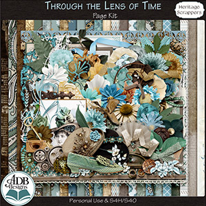 Through The Lens Of Time by ADB Designs is a Heritage collection full of all you need to create many pages for your family history albums. The palette of blues and browns with touches of gold and green is perfect for all your ancestors and does not restrict you just one time period or era. Beautiful flowers and foliage, vintage frames, antique jewelry, old buttons and fashions, lots of lace and ribbons AND more are ready to provide you inspiration and fun as you record your family history.