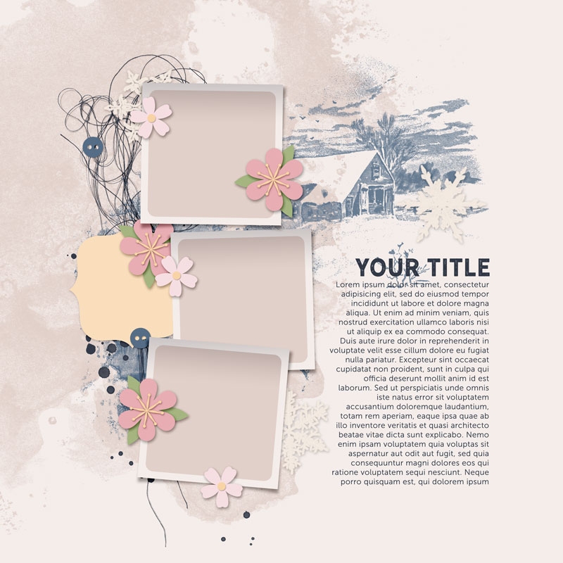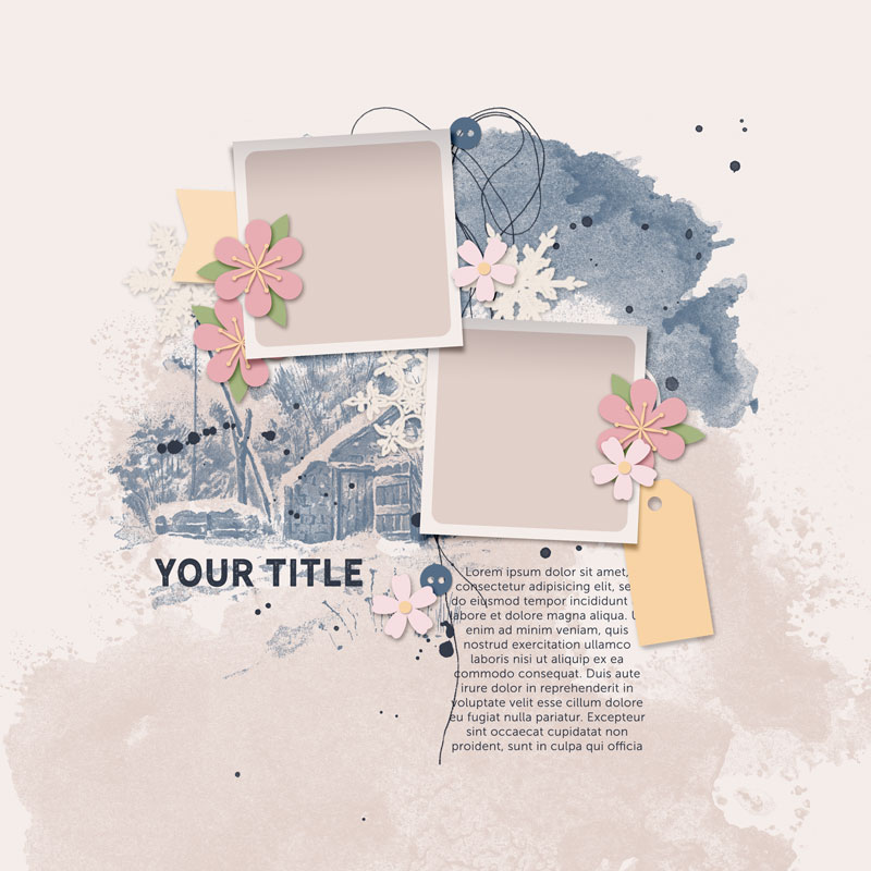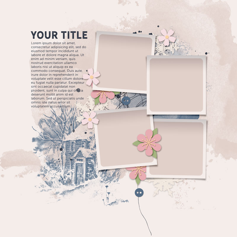 Create stunning layouts quickly with these whimsical templates! Add your photos to the clipping masks, customize the paint layers by changing colors or adding papers, and personalize your design. These templates are perfect for achieving both artistic and clean designs. Experiment with blend modes and opacities to discover new looks.