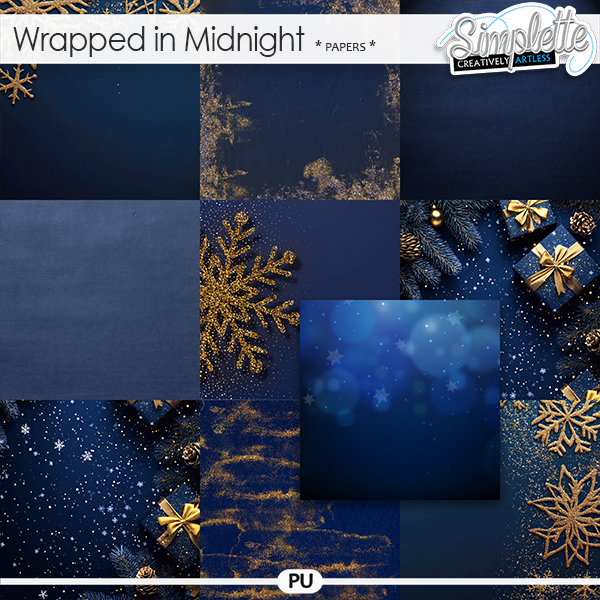 A blend of deep midnight blue, warm kraft textures, golden accents, and natural details creates the perfect atmosphere for cozy, refined projects. Perfect for your Christmas layouts, winter albums, journaling, and elegant holiday cards, Wrapped in Midnight invites you to create under the starlit glow of a golden night.