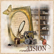 103 elements include: books, candles, mouse, ink, inkwell, lace, quill, pen, pipe, banister, staircase,notebook, globe, brandy glass, clock, coins, cardboard, butterfly, documents, eye glasses, telephone, postage, typewriter, ribbon, bow, scroll, splats, swirls, tape, texture, wire, frames, table, chair, library, bookcase, masks, window, edges, overlays, and 7 cluster blends