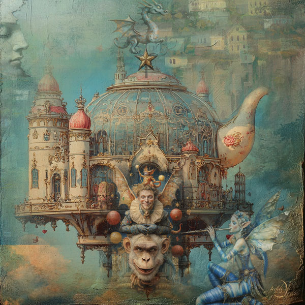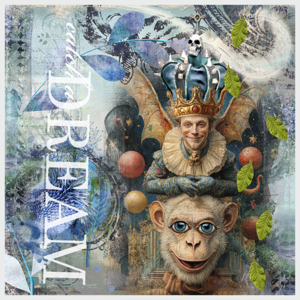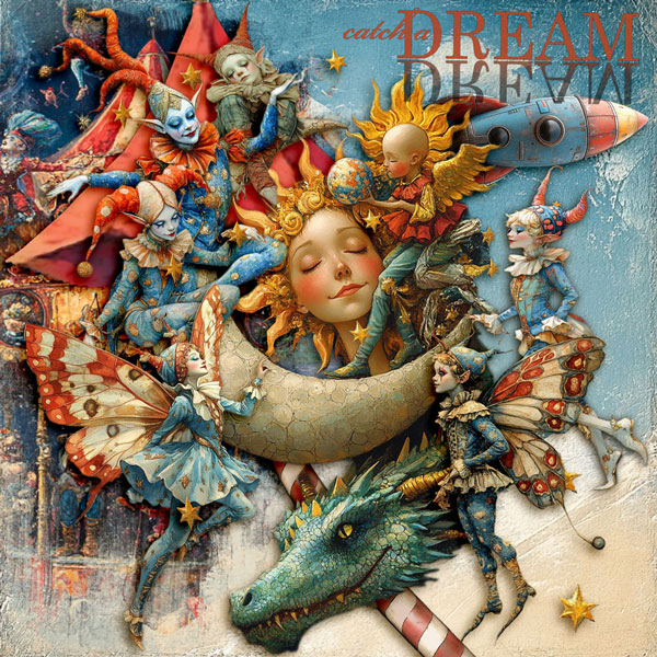 Detailed Elements: 12 papers, 4 background builder,1 barber pole,1 bird,1 bottle.1 brush,3 butterfly,1 cluster,1 crown,1 eye, 3 fish,3 flowers.3 frames,1 hat, 1 heart, 1 hinge,2 jewerly, 3 leaves,1 lizzard,2 metal, 3 moons,1 ocypus,4 paper pieces,11 people, 2 plants, 1 seahorse,1 rocket,3 special effects,5 splatters,1 stamp, 1 star,1 swirl, 1 umberella,1 unicorn, 1 dragon weathervaine, 2 wordart