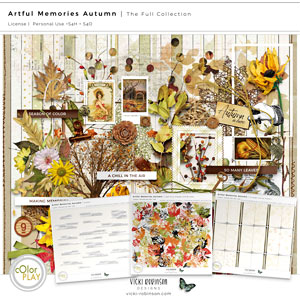 The Autumn Love Kit is a Digital Scrapbook pack by Vicki Robinson. It includes a variety of papers and elements to create autumn or fall and every day life themed scrapbooks and art journal pages, digital art, and printable art projects.