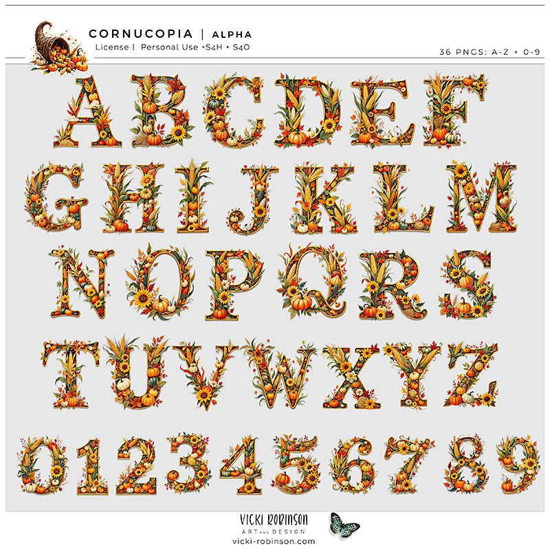 There’s something magical about a horn of plenty—overflowing with pumpkins, sunflowers, apples, and all the golden glow of the harvest season. That’s the feeling behind Cornucopia, a digital collection brimming with abundance and autumn cheer. Perfect for documenting fall memories, celebrating seasonal traditions, or simply playing with warm and cozy creative vibes.
