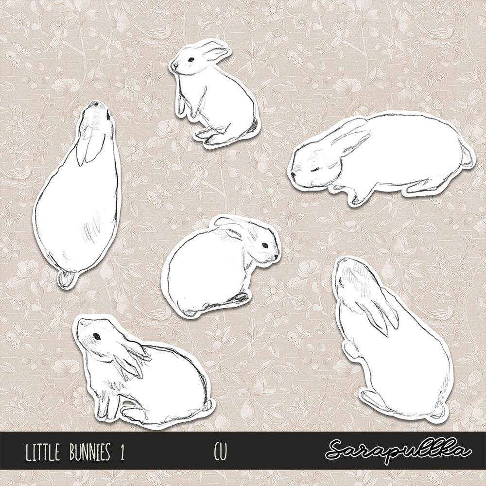 Little Bunnies is a Commercial Use Digital Art Pack by Sarapullka Scraps. It includes a 6 pencil sketch bunnies.