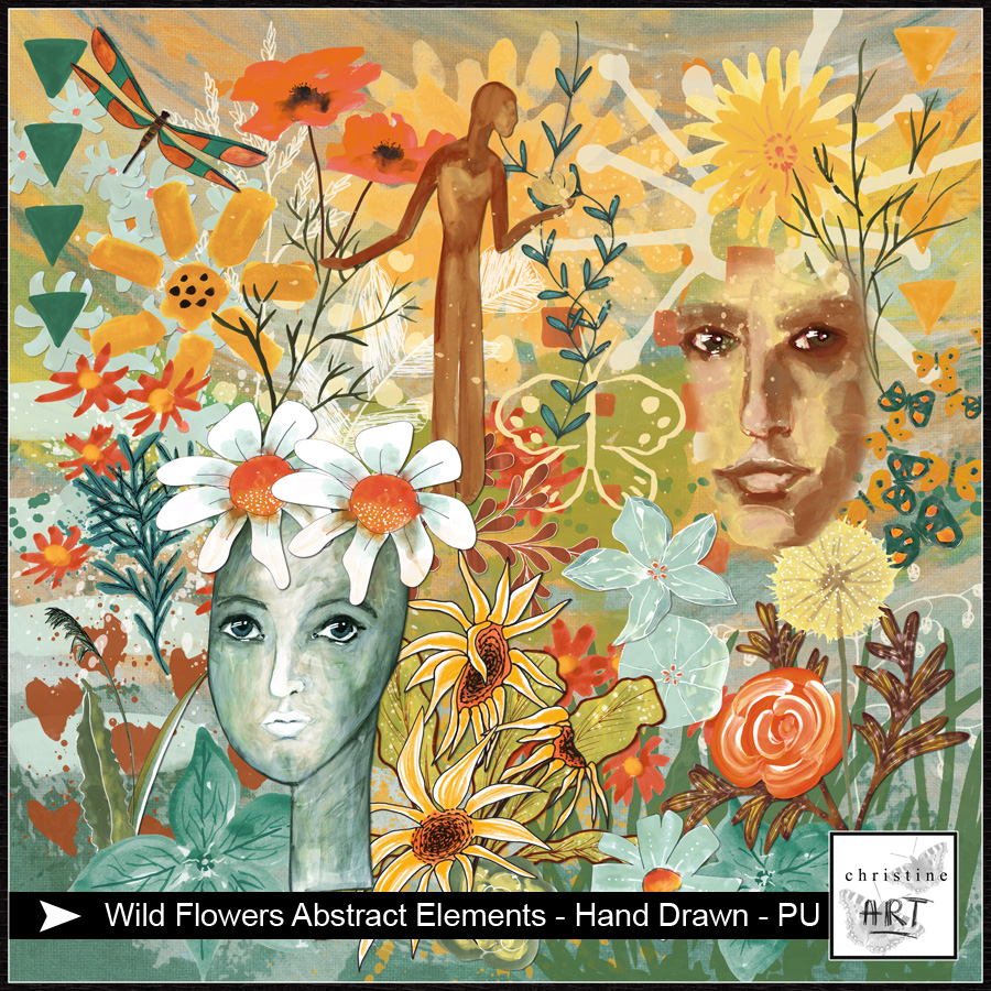 Wild Flowers Collection is a Digital Art Scrapbook product hand drawn by Christine Art.