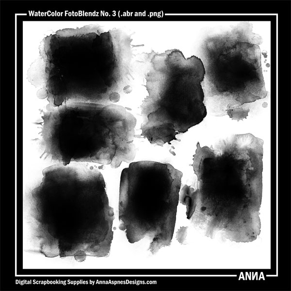 A collection of 7 watercolor FotoBlendz clipping masks delivered in .abr and .png format. Clip images to the masks or recolor and apply blending modes as desired for a unique embellishment. Guidance on the use of clipping masks and recoloring in Photoshop and Elements can be found in the Instructions for Use eBooklet which is available as a free download from the store or view this video.