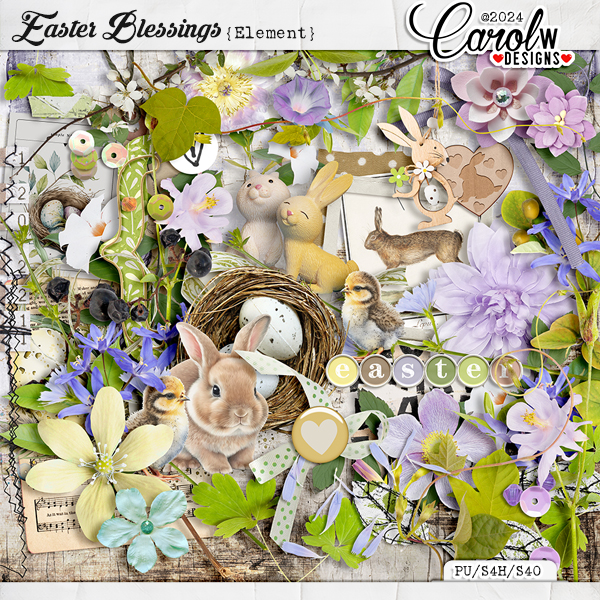 Easter Blessings page kit (55 unique elements made in PNG 300dpi,Contains recolor flowers,14 unique papers made in JPG-12x12 inches-300dpi)