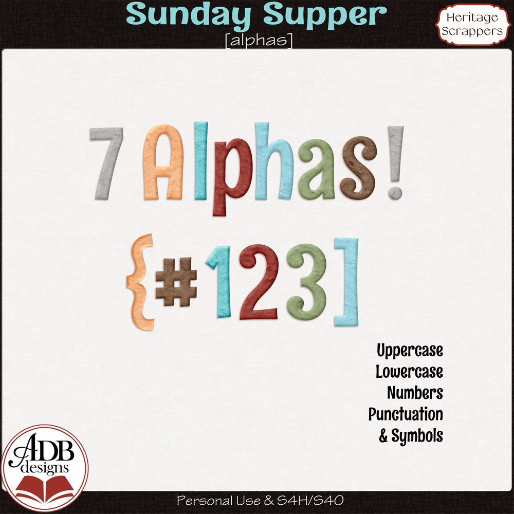 Sunday Supper Digital Scrapbooking Alphas by ADB Designs