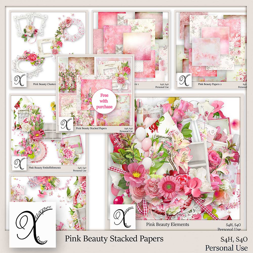 Pink Beauty Borders is a Digital Scrapbook Pack by Xuxper Designs. It includes a variety of papers to create Romance-themed scrapbook pages, digital art, and printable art projects.