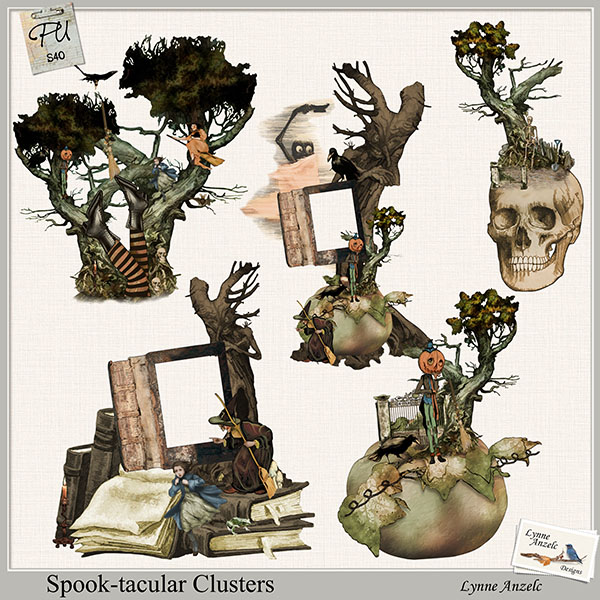 Spooktacular Digital Scrapbooking Clusters by Lynne Anzelc