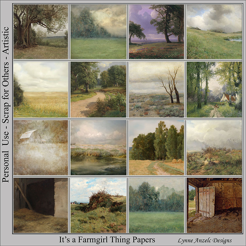 Its a Farm Girl Thing Kit is a Digital Scrapbook Kit by Lynne Anzelc. It includes a variety of papers and elements to create Life-themed scrapbook pages, digital art, and printable art projects.