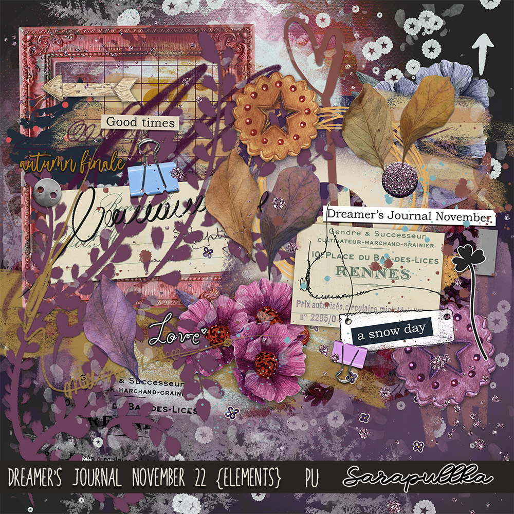 Dreamers Journal November 2022 Digital Scrapbooking Elements by Sarapullka Scraps