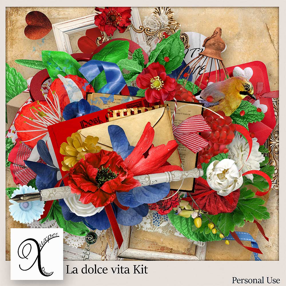 La Dolce Vita Embellishments is a Digital Scrapbook Pack by Xuxper Designs. It includes a variety of papers to create Love-themed scrapbook pages, digital art, and printable art projects.