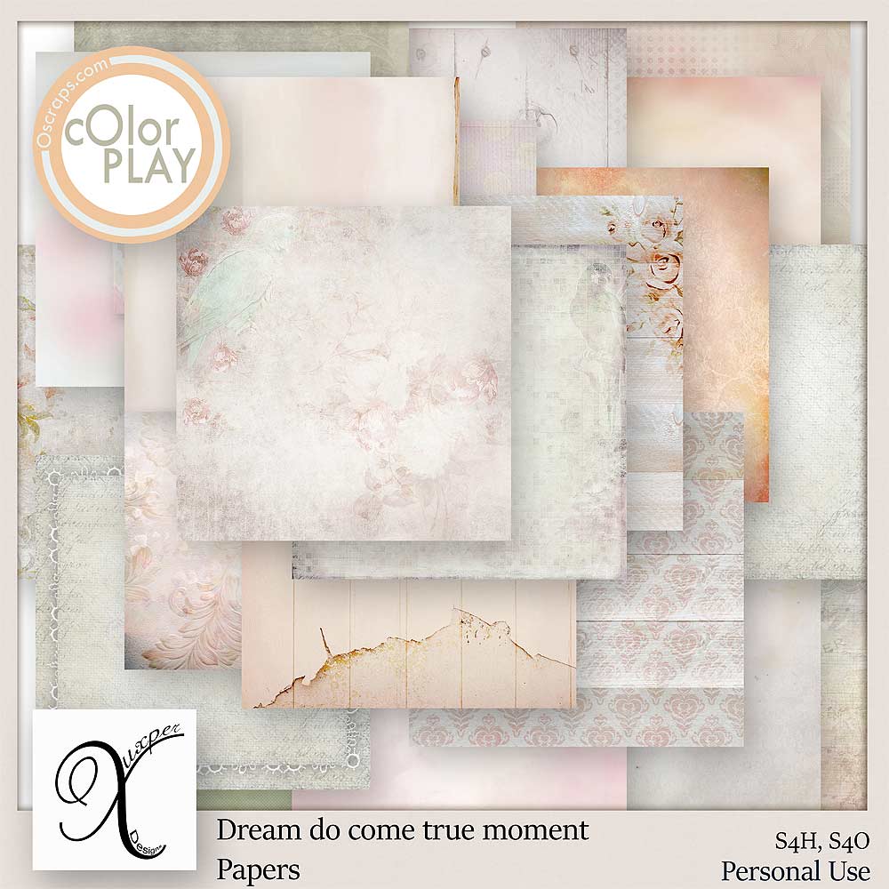 Dream do come true moment Kit is a Digital Scrapbook Kit by Xuxper Designs. It includes a variety of elements and papers to create Romance, Tenderness-themed scrapbook pages, digital art, and printable art projects.