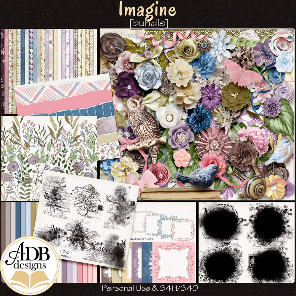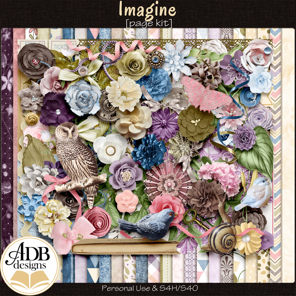 The Imagine Collection by ADB Designs is a beautifully vintage collection that would be perfect for so many of your digital scrapbooking project! Scrap your summer garden...your everyday family moments...parties...and so much more.