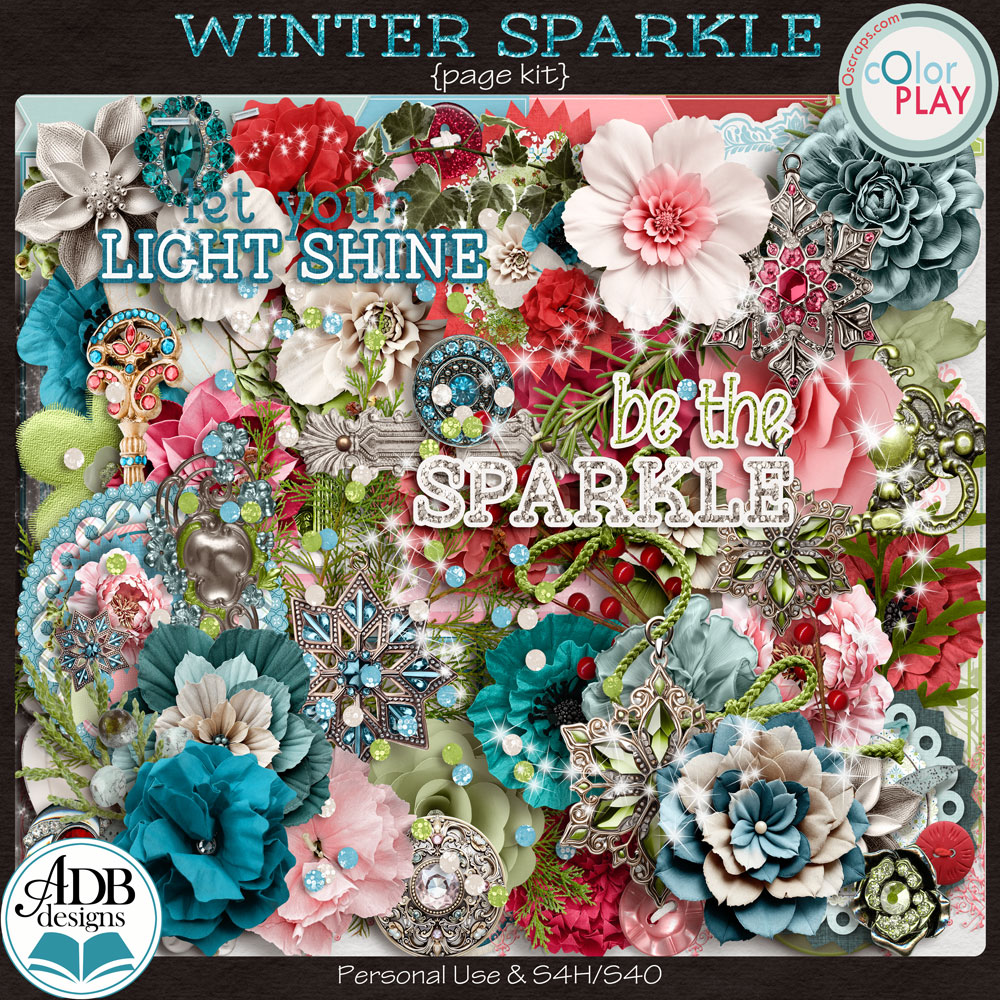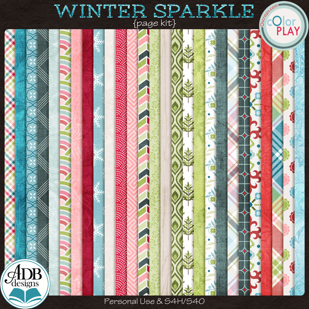 Commemorate your holiday season and winter with this beautiful Winter Sparkle Collection by ADB Designs! This is perfect for scrapping up any part of the holidays and the joy they bring...New Years' celebrations...the beautiful outdoors of the winter season.