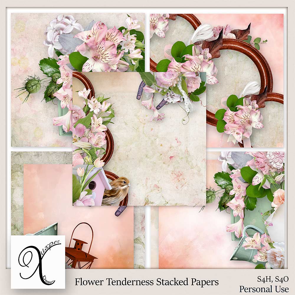 Flower Tenderness Digital Scrapbooking Stacked Papers by Xuxper Designs