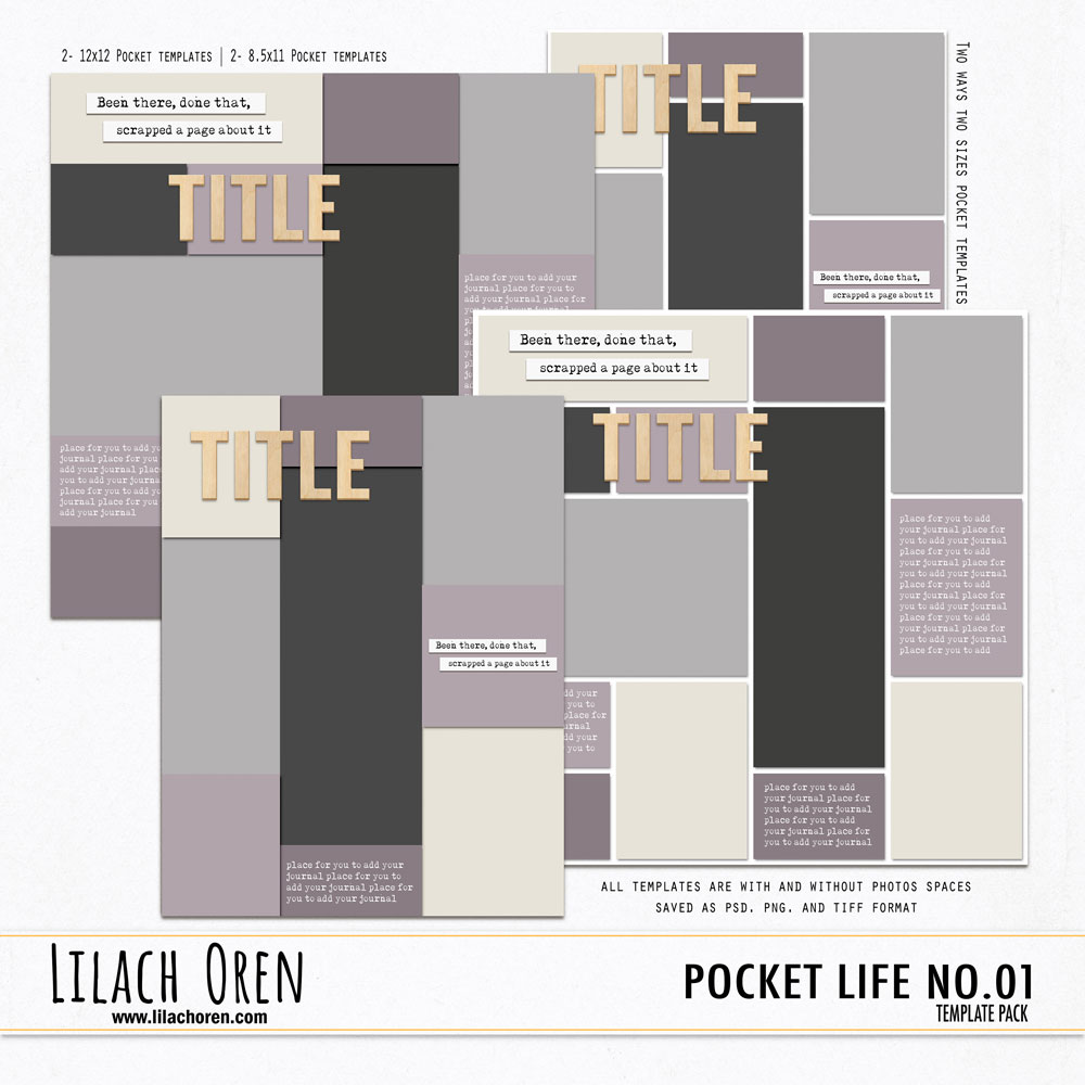 Pocket Life Templates 01 is a Digital Scrapbook Pack by Lilach Oren. It includes a variety of papers to create quick and easy-themed scrapbook pages, digital art, and printable art projects.