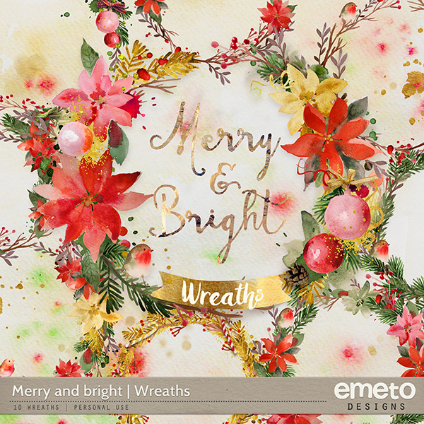 Merry and Bright Digital Scrapbooking Wreaths by emeto Designs