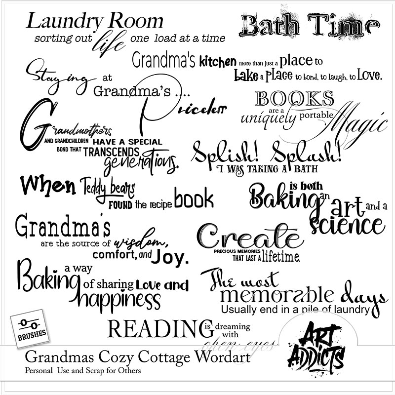 Grandmas Cozy Cottage Collection is a Digital Scrapbook Collection by Art Addicts. It includes various elements and papers to create storybook-themed scrapbook pages, digital art, and printable art projects.