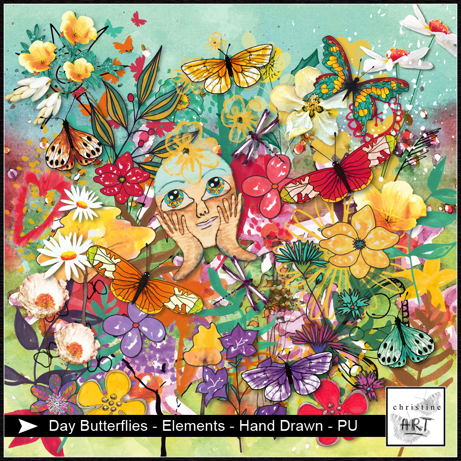 Day Butterflies Kit is a Digital Art Scrapbook product hand drawn by Christine Art.